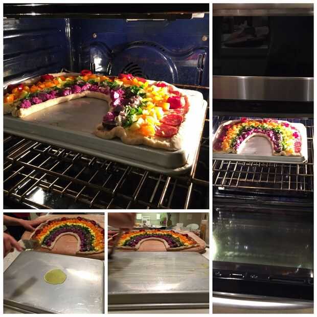 Cuando termine, sacar la pizza y servir caliente. Como mencionamos antes, depende de ti el cómo desea servirlo, puede crear combo sabor las tiras con todo a, o usted puede cortar las tiras de cada sabor en su propio. Encontramos que los sabores ROYG todo trabajado muy bien juntos, el puente de sabor YGBI no jugaron bien, y los sabores BIV funcionó. Otra vez, decidir sobre los ingredientes que funcionan para usted, pero no tengan miedo de experimentar con combinaciones de sabores nuevos.