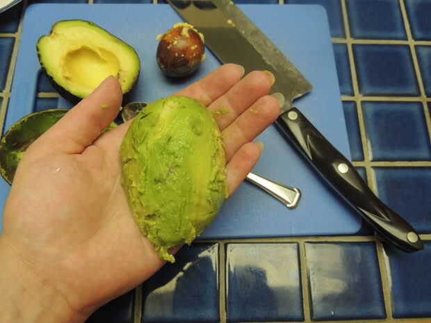 Corte el avacados por la mitad y retire la semilla. Tomar una cuchara y deslice con cuidado entre la piel y la carne. Trabajar la cuchara alrededor del aguacate y estallar hacia fuera la carne. Repita con las mitades restantes. Establecer la avacados a un lado hasta que esté listo para montar. No la rebana el avacados. Usted tendrá un tiempo difícil levantarlos nuevamente después de ponerlos. Ellos también volverá marrón mucho más rápido si en rodajas.