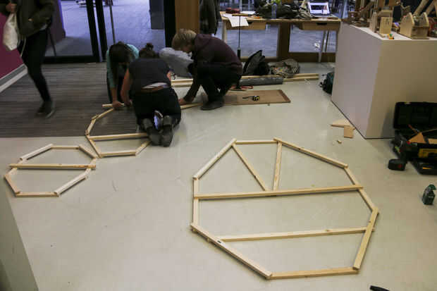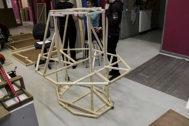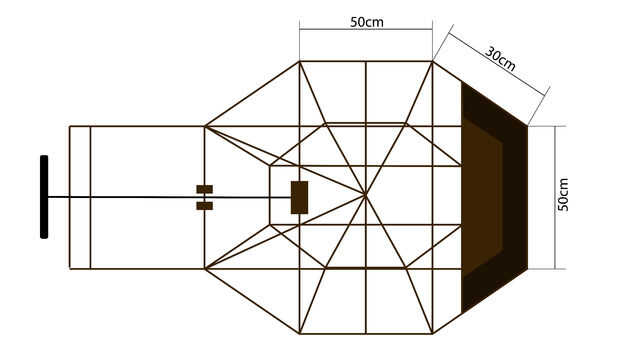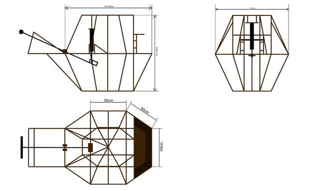 Cuando se conecta los tres octágono necesita hacer el marco para la cola de la ballena. Mira arriba en el dibujo técnico para lo que tienes que colocar la madera.