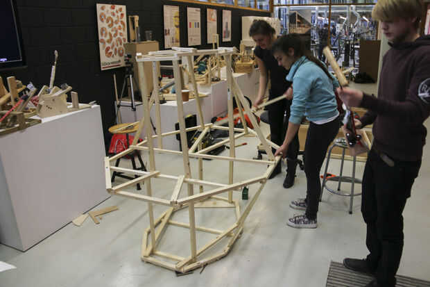 Primero deberás hacer tres octágono de vigas de madera como se muestra aquí arriba. Dos octágono es más pequeñas y se utilizará para el fondo y la capa más alta. El octágono mayor vendrá en el medio. A continuación se conecta los bordes del octágono y asegúrese de que la estructura es estable en todas las direcciones. Asegúrese de que dejar espacio para la boca de la ballena.