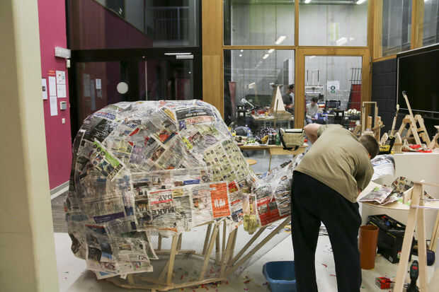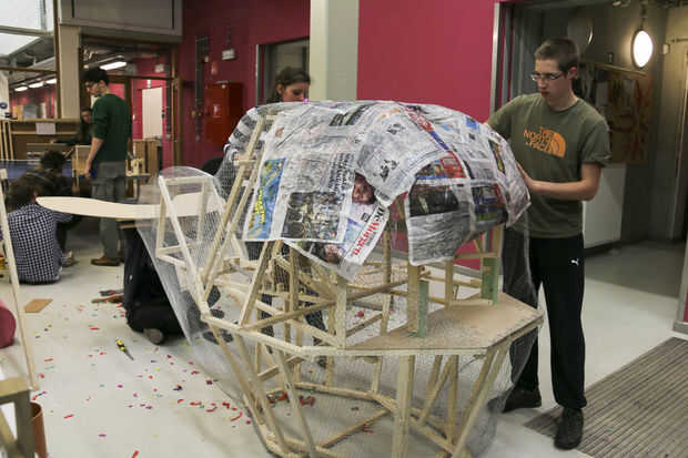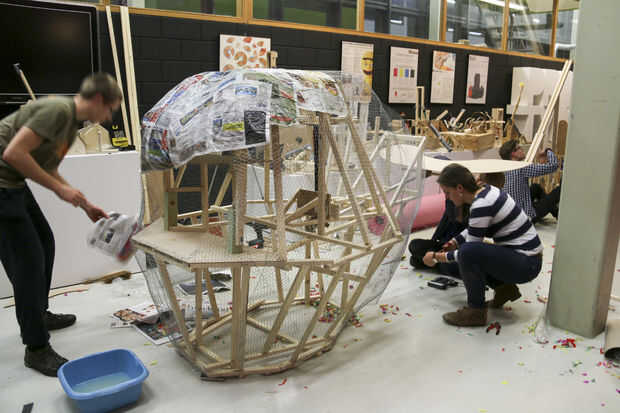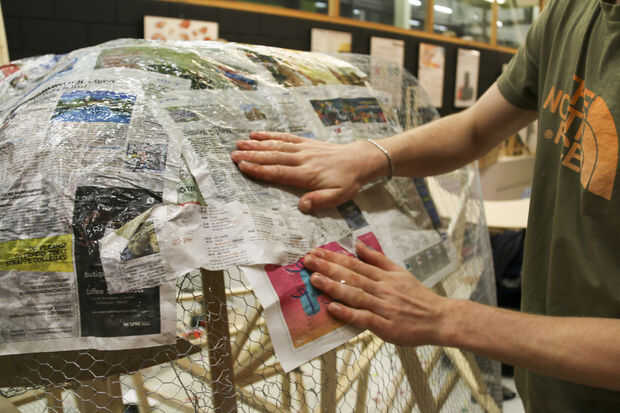 Vamos a utilizar el bastidor para estirar el alambre de pollo encima. Usted puede clavar el alambre de pollo en el marco. Finalmente poner periódico u otro papel fino sobre el alambre de pollo y rellenar el formulario pegando los periódicos junto con pasta de papel pintado.