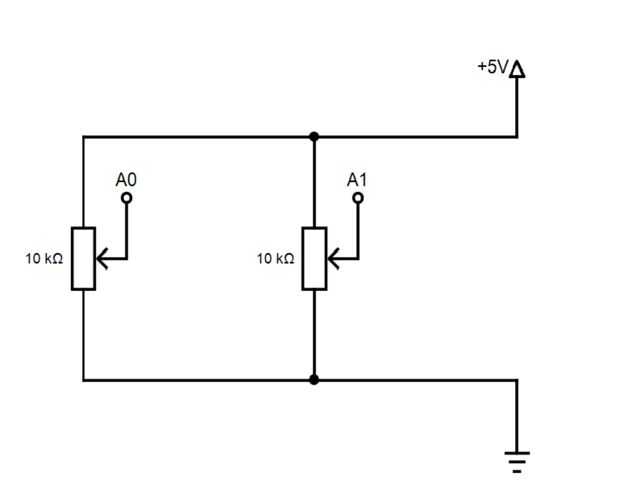 Ahora somos casi acabado... sólo tiene que conectar el potenciómetro de dos como se muestra en la shematic. Cuando se invierte el batidor en el juego, solo interruptor de + 5V con toma de tierra.