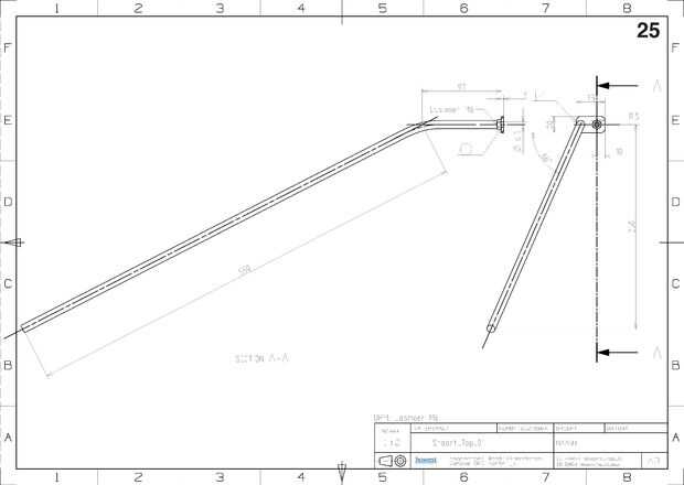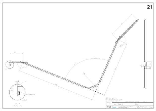 Cortar los tubos de acero en la longitud correcta y doblar en el ángulo correcto. Luego soldar las placas fixer para las tuercas de los tubos y soldar todos los tubos contra la parte superior e inferior del marco.