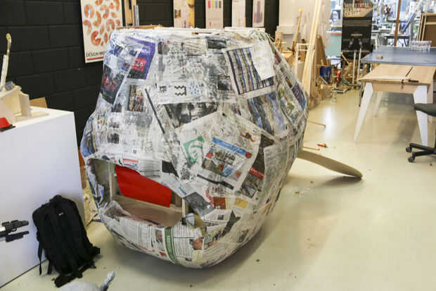 -Conecte el alambre de pollo entre los tubos por soldadura en, o sujete con alambre de metal. Luego pegar periódico junto con pasta de papel de pared y rellene el formulario. Aplicamos este método para nuestro primer prototipo y funciona bien (ver las fotos de arriba).