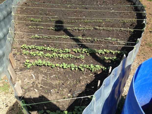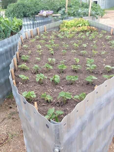 Easy peasy... Estos son de compartimientos del grano dañado de viento, les atornilladas y llena 1/2 arena y 1/2 con tierra vegetal... todo crece más rápido porque el suelo está caliente, y enterrar una cáscara de plátano de vez en cuando para los gusanos.
