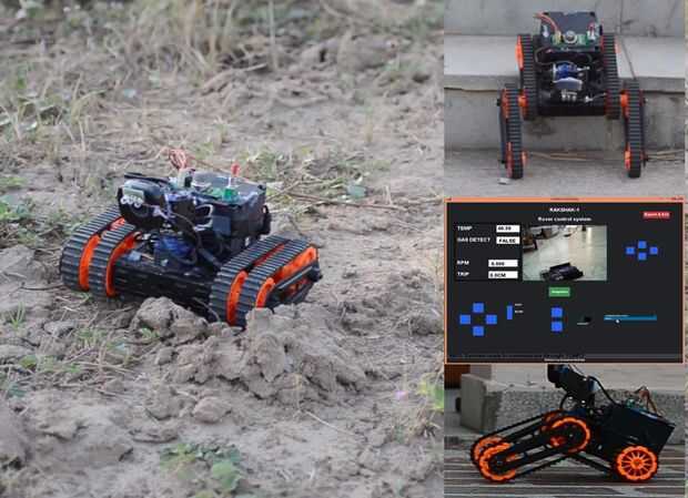 Este sistema robótico puede controlarse utilizando un GUI usando procesamiento. El rover puede controlarse mediante el envío de comandos a través de la GUI en el portátil. Utiliza los módulos de xbee serie 2 para la comunicación inalámbrica. Tiene la capacidad para atravesar terrenos irregulares y subir escaleras usando el mecanismo de servo. El rover tiene un sensor de temperatura LM35, un sensor de gas MQ 2 y sensor de efecto hall allegro con anillo de imán de neodimio. Los valores de estos sensores es enviada a la GUI cada 1 segundo. La GUI muestra temperatura, distancia recorrida, RPM, nivel de gas. La interfaz gráfica también puede dar alertas de voz si nivel de gas objetivo está por encima de cierto nivel. También tiene una lámpara de cabeza LED que puede ser utilizada en condiciones de poca luz. La interfaz gráfica puede mostrar también la alimentación de la cámara a bordo. (esta característica funciona con cable de cámara de USB). También se puede tomar una captura de pantalla. El software también registra los datos del sensor en un archivo de excel que puede utilizar posteriormente para trazar gráficos para analizar los datos.
