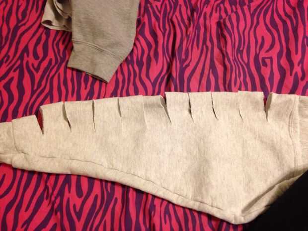Hacer algunos cortes grandes en las mangas así que la mostrará en la parte superior de los brazos. Puede dejar como esta o hacer el siguiente paso.