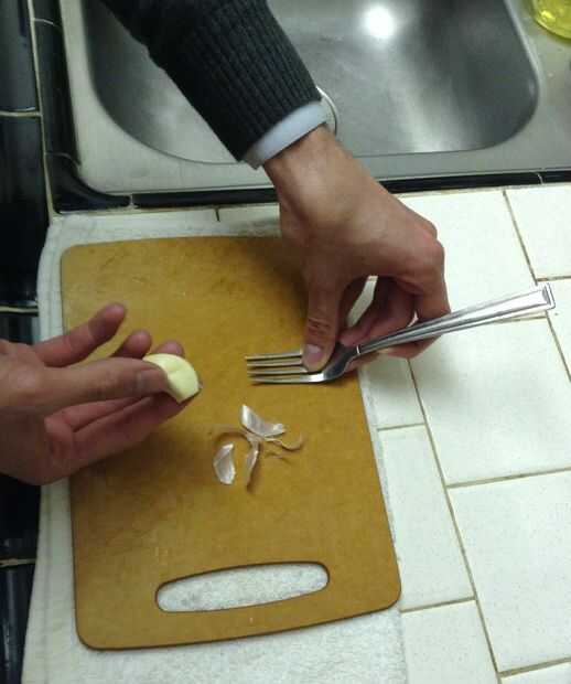 Rallar el ajo con un tenedor (2 / 7 paso)