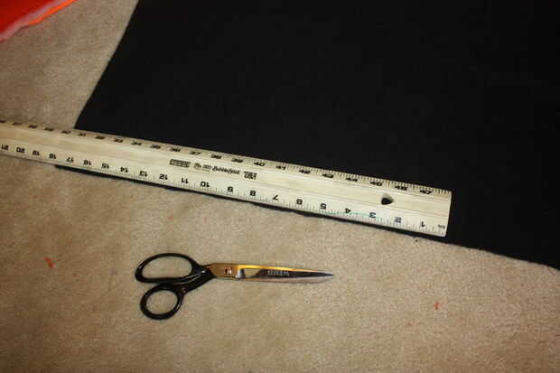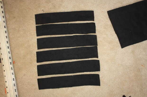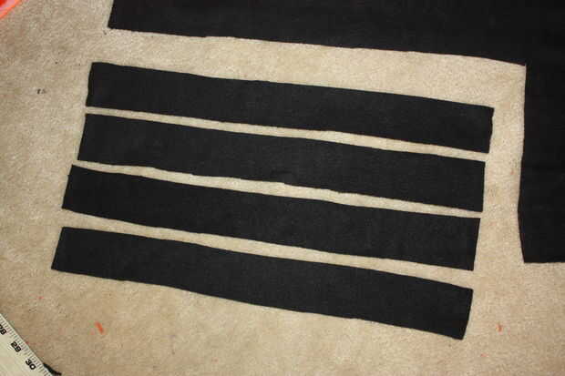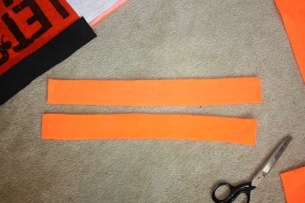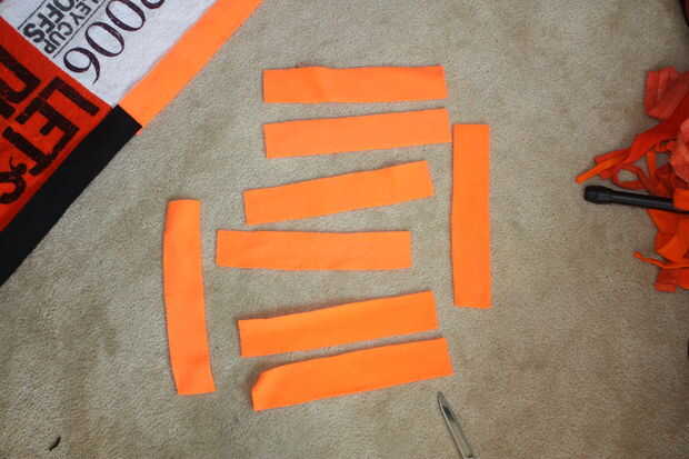 Me decidí a hacer un patrón alterno de naranja y negro para los bordes de la colcha. Yo solo corte tiras a la anchura de mi regla y luego hizo el número apropiado de tiras de 17" o 12", por lo que el patrón sería algo simétrico.