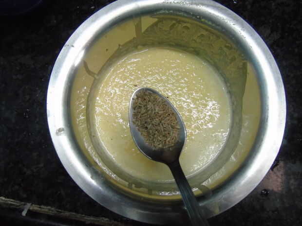Agregue comino y dejarlo para 2-4 horas en un lugar cálido para fermentar.