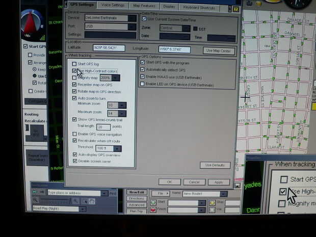 Para SA Delorme en la pestaña de configuraciones GPS elegir... colores de contraste de alta... para la noche uso del tiempo.