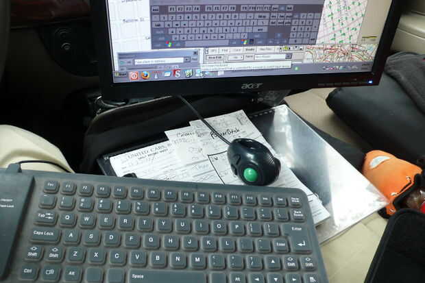 tengo tres teclados a mi disposición. Teclado de la laptop que no uso. el teclado en pantalla, que puedo utilizar en una emergencia. Y este teclado USB de silicona flexible he pegado a un pedazo delgado de fibra de madera. Mantenerlo en el piso debajo del asiento. Cuando lo necesito I simplemente recogerlo y ponerlo en mi regazo.
