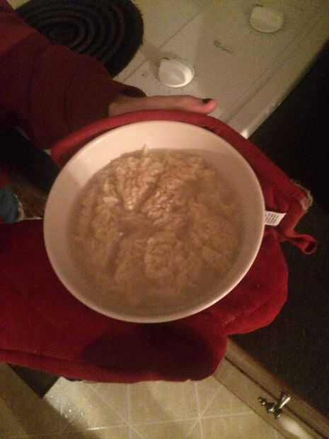 4. Tallarines de extracción de microondas. PRECAUCIÓN: Se recomienda fideos va estar caliente y un protector de calor. Escurra bien el agua.