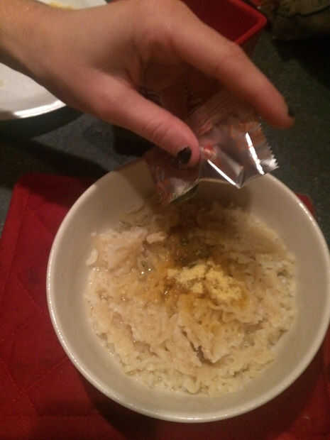 1. Eliminación de los tallarines del paquete; Dependiendo de cómo te gusta comer tus fideos, usted puede romper los fideos mientras que la bolsa todavía está sellada, para conseguir menor tamaño tallarines que son más fáciles de comer con una cuchara, o puede dejar los fideos en un bloque si prefiere los tallarines del estilo slurp.