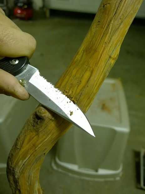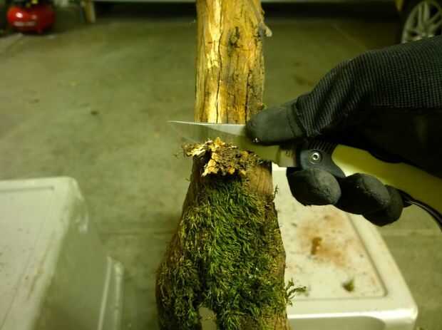 Con un cuchillo afilado comenzar la limpieza de la sucursal primero eliminando musgo y suciedad, luego realizar una segunda pasada a su fondo ha eliminado todo de la corteza de la superficie de ramas.