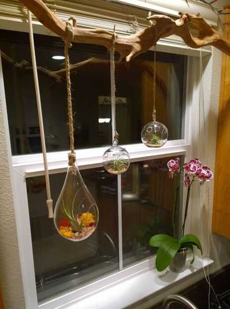 He tratado de incorporar algunos de los principios tradicionales del diseño de Zen japonés de asimetría, simplicidad, naturalidad y minimisado belleza en estos colgantes terrarios de vidrio. El uso de lineas de pesca, que es casi invisible, para colg