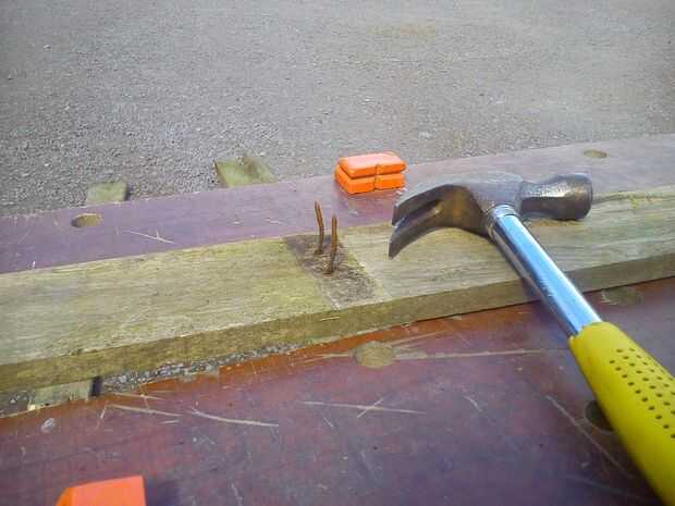 Parece más fácil hacer las tablas hacia fuera de debajo de ellos con la palanca y extraiga los clavos después, aunque hay muchos métodos diferentes para desmontar palets.