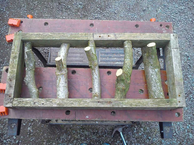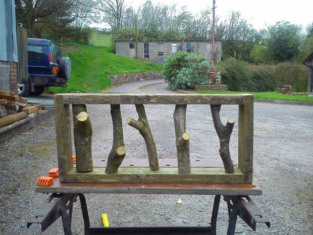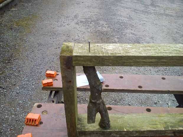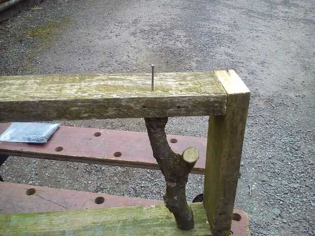 Entonces puso un clavo más pequeño por la parte superior y en la rama, volcó el marco, puse clavo más pequeño en la rama, voltea hacia atrás y poner otro clavo en la rama y luego hizo lo mismo al otro lado, por lo que sobre todo hubo 2 clavos en cada extremo de cada rama.