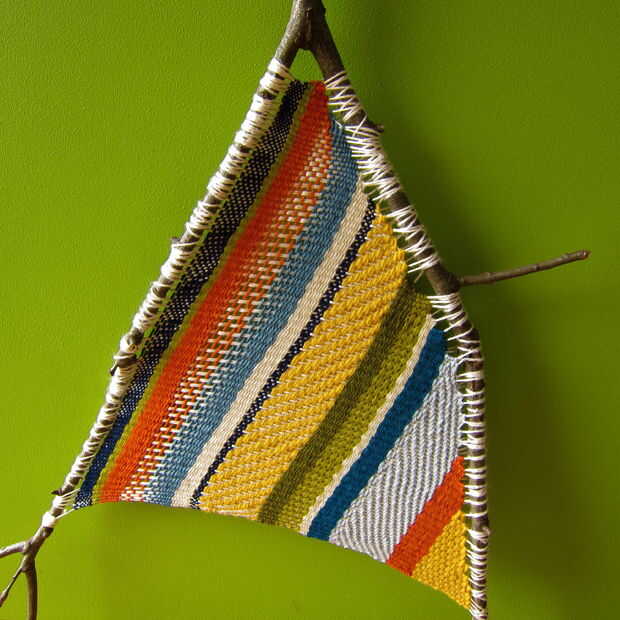 Cuando él estaba tejiendo su rama y VI cuánto lo disfrutó realmente quería probarlo yo mismo en una escala más grande. He añadido unos diseños en mi versión sobre el tejido para dar a la pieza de carácter extra.