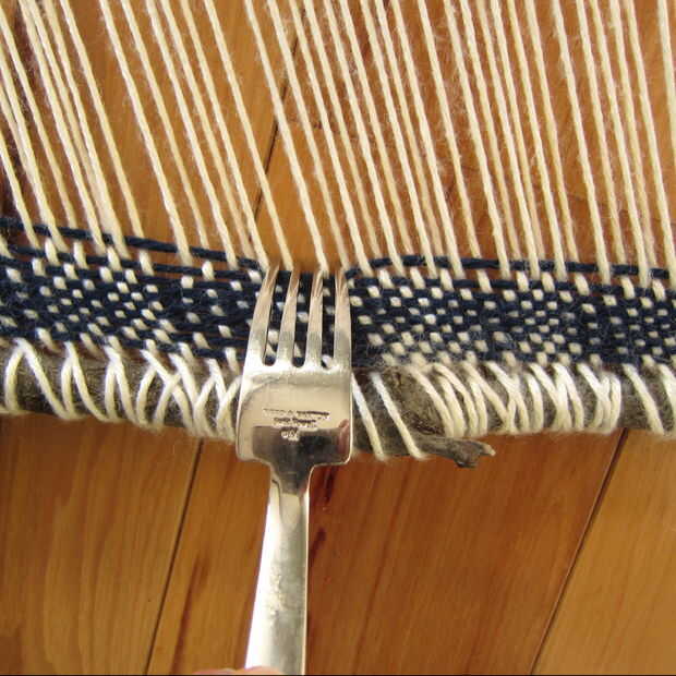 Puede utilizar un tenedor para apretar su tejido en cualquier momento si no te lo suficientemente apretada con los dedos.