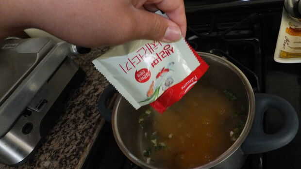 Pongo agua en, por lo que es siempre tan levemente más de una pulgada de profundidad. A continuación, ponga en el polvo y vegetales secos de mierda. Get te pique palillo, agitar agitar agitar. Pongo en un montón más de pimiento rojo escamas porque deshonra mi carrera por no hacerlo. Cierre la tapa y llevar a hervir.