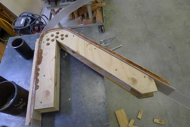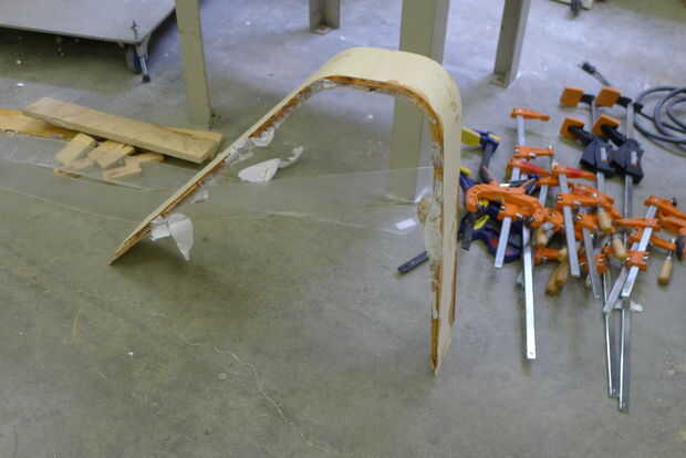 Doblando el brazo fue manera más difícil que lo que yo esperaba porque tomó triple el tiempo que la pierna delantera. Por supuesto, también era más complicado hacer el molde. Creo que esto es debido las 2 curvas en la pieza. Además, con piezas largas para doblar dificulta la configuración y manejo del material. Después saqué la pieza del molde, descubrí que la curvada era muy estructural para piezas más largas. Flexionada más de lo que me quería y me preocupa que la silla entera no iba a resistir a una persona.