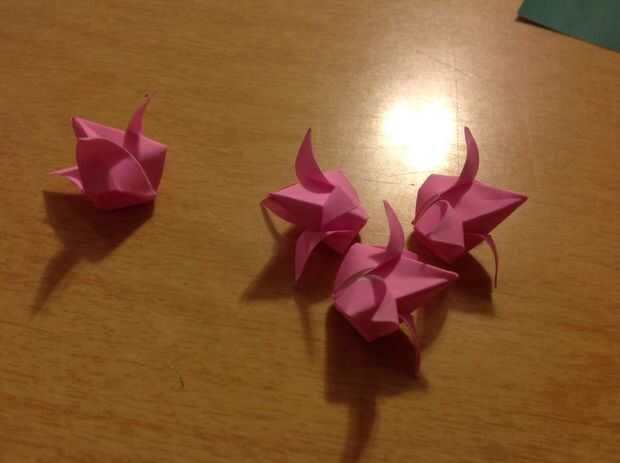 -Flores origami (esto se basa en preferencia. Decidí usar una rosa blanca grande y algunas pequeñas flores rosadas alrededor de él por lo que correspondería con el vestido de mi fecha.)