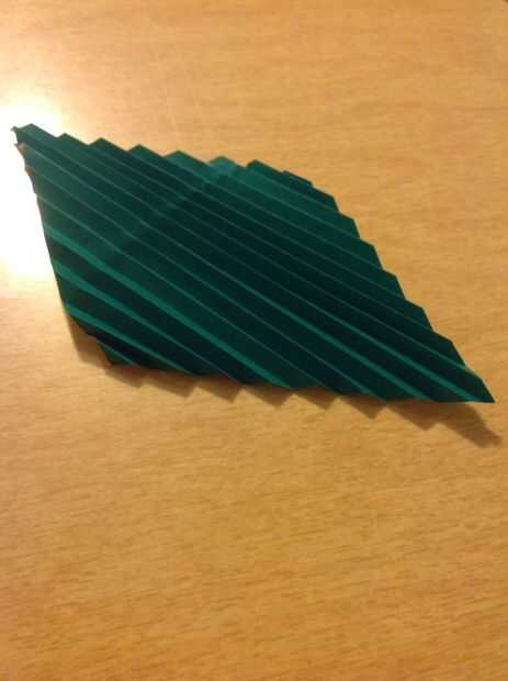 Agarra un pedazo de papel verde de la hoja. doblar por la mitad diagonalmente y luego abrir y doblar cada esquina pliegue de centro, no las cuatro esquinas, pero sólo las dos esquinas que usaste para el doblez diagonal. Repita haciendo pliegues entre cada pliegue anterior hasta que las secciones se convierten en demasiado pequeñas para doblar fácilmente. montaña doble cada otro pliegue y Valle de doblar los otros. doble todo apretado por lo que se asemeja a la primera foto.