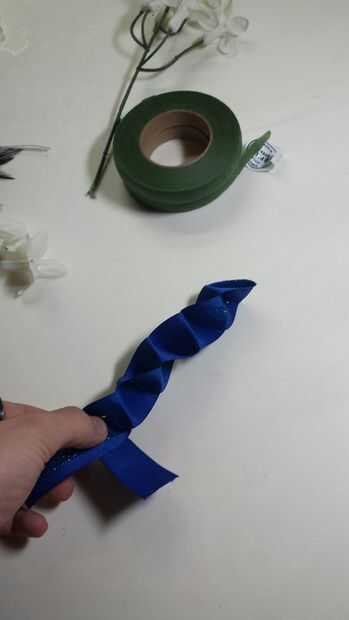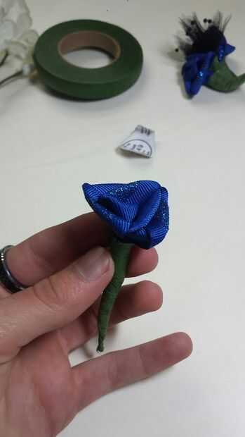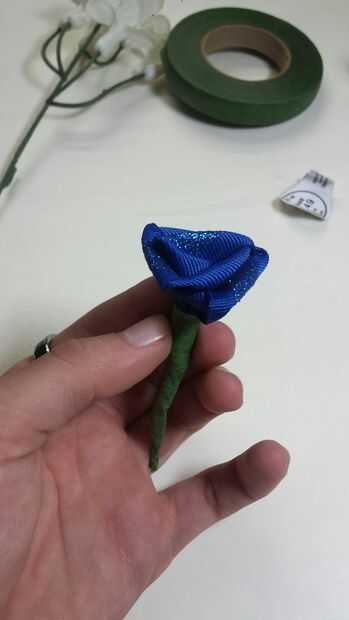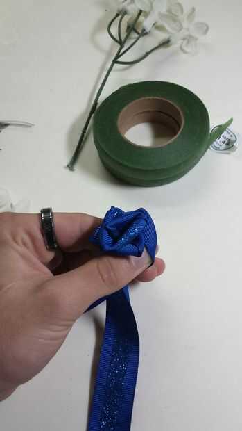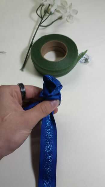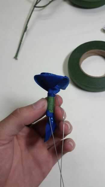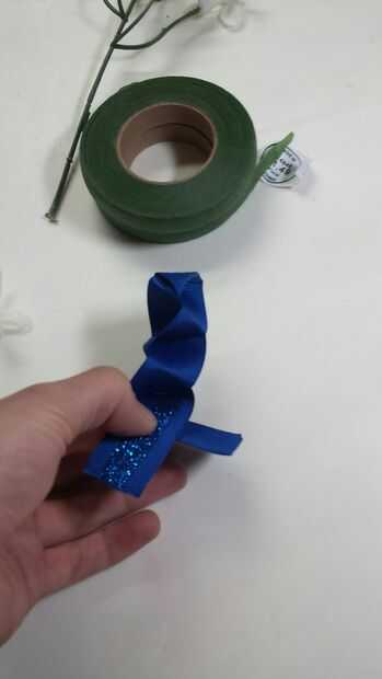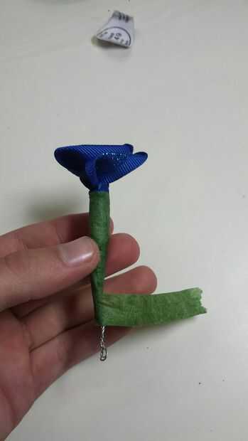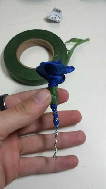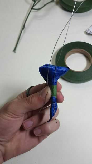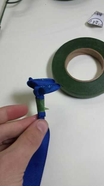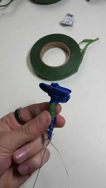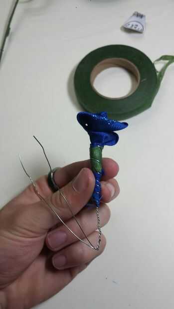 Luego tome un pedazo de cinta de floristería y envuélvalo alrededor de la base para evitar colapso. Cortar la cinta de opciones extra, entonces tome algunos cable y agregar a la base. Esto es así se puede manipular la flor después de haber terminado. Terminar de envolver la base. Puede encrespar tus pétalos de flores y listo.