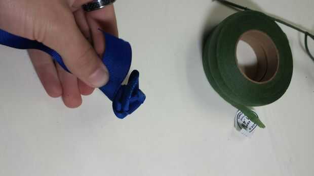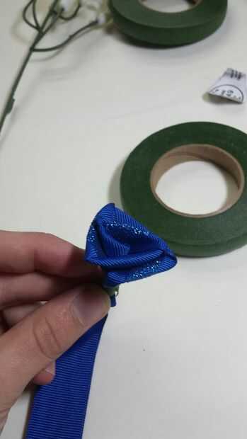 Doblar la cinta por la mitad, para que hacer un triángulo. A continuación doblar la cinta inferior y mantener plegado la cinta inferior encima hasta que se llega a los reflujos de la cinta. Puede mantener los pliegues últimos juntos y soltar la cinta de opciones. Tire de la cinta de fondo a través y se derrumbará sus pliegues en una flor. Si tira demasiado lejos usted tendrá que volver a empezar.