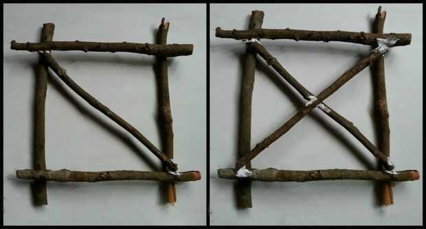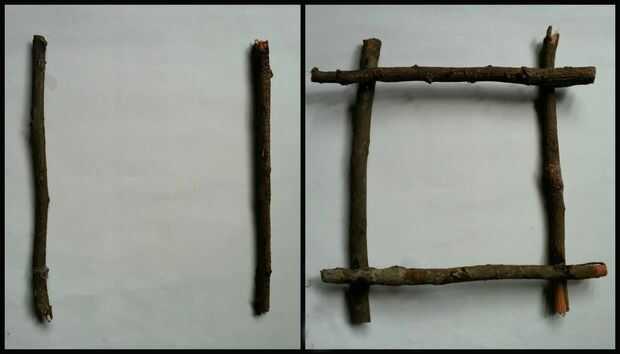 Pegamento 2 ramitas más a ambos lados de las ramas anteriores para completar el marco.