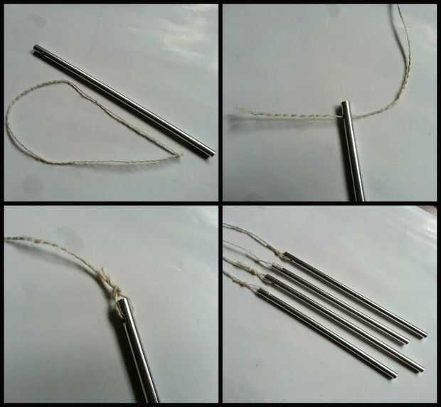 Preparar las cuerdas para sujetar los tubos de campana y el badajo.