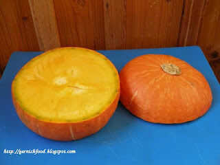 2. tomar una parte central y sacar una carne de calabaza. Esta parte va a ser un marco.