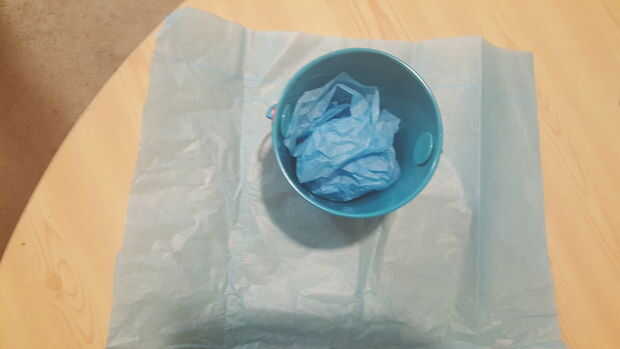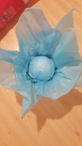 Utilice el último cuadrado de papel de seda para cubrir la bola de la espuma.