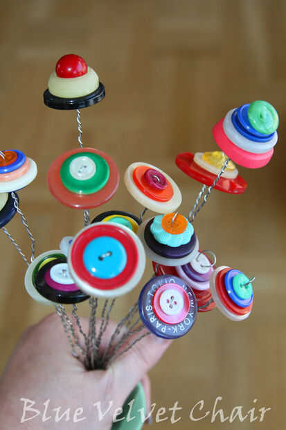 Aunque la idea ha sido alrededor de un rato, me sentí absolutamente vertiginoso cuando tomé el ramo de flores de botón que armé este fin de semana. Hay algo tan deliciosamente táctil sobre estos píos poco de vistosidad - así que voy a proporcionar un rápido cómo hacerlo con la esperanza de que usted también puede estar inspirada para tirar de sus botones. Prometo, incluso algunos te harán sonreír!