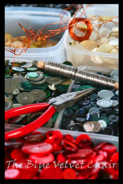 Además de los botones, todo lo que necesitas son cortadores de alambre (tijeras de trabajo pesado también funcionan) y su elección de alambre. Utilicé un alambre de plata para dar una sensación de 'moderna', pero alambre de floristería verde es también una buena opción.