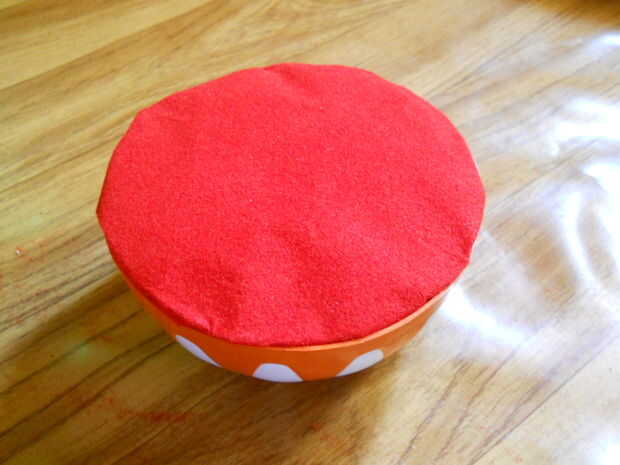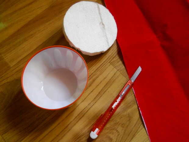 uso del tazón de fuente / cesta como dibujar una forma (boca o la cara del tazón de fuente) en thermocol