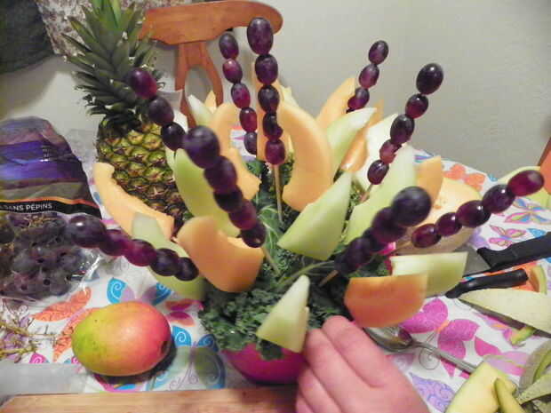 este instructivo le guiará a través de algunos de los fundamentos para la creación de centros de mesa de frutas.  Todo lo que necesita es un buen cuchillo, unos palillos de dientes, algunas frutas y su imaginación.  Soy autodidacta y han hecho unos c