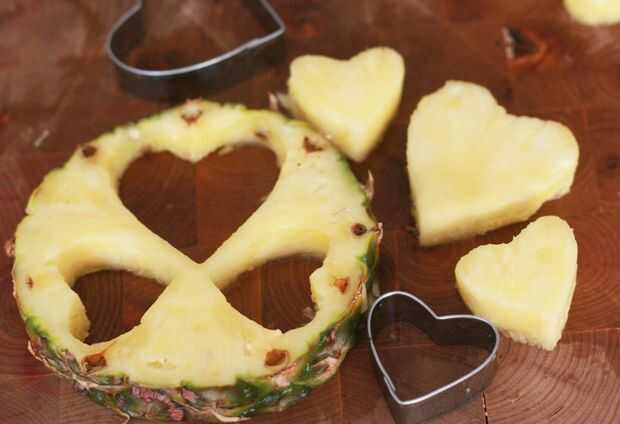 Cortar la piña en 1/2"(1 - 1.5 cm) o tantas rebanadas. Luego, usando un cortador de galletas o un cuchillo, usted puede cortar estas rodajas en cualquier formas Traje fantasía.