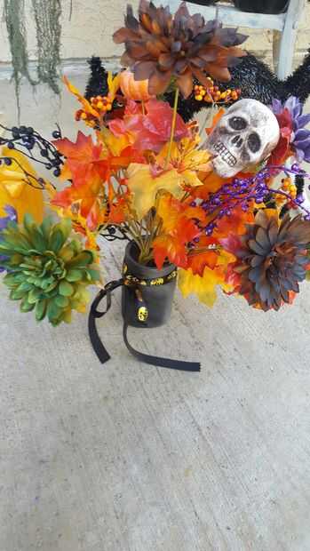 Halloween está cerca. Aquí una decoración barata de último minuto.Lo que se necesita:1. maíz de caramelo2. flor recoger. Personas lanzan cientos de ellos a diario. Ponerse en el centro de reciclaje.3. pegamento4. flor de cualquier color de otoño.Cuan