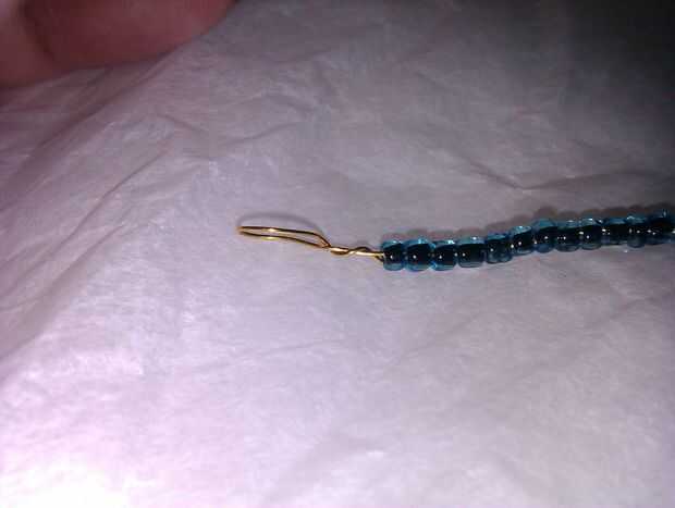 • en el alambre largo, enhebrar las cuentas. Utilizar tu spinner de grano si tienes uno.