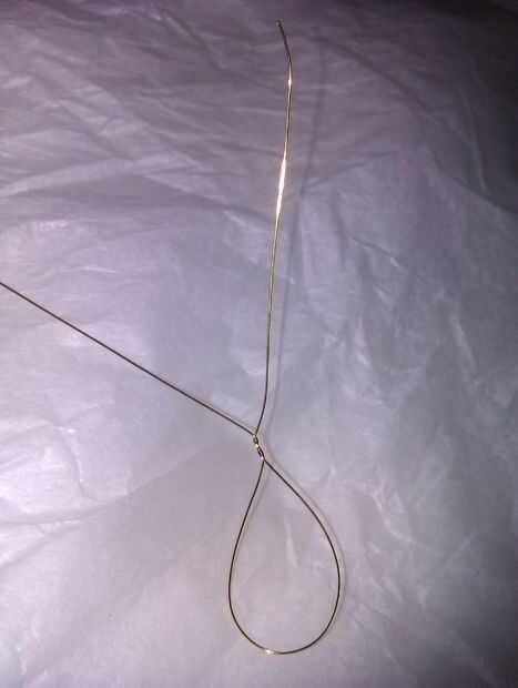• hacer un lazo en un extremo, dejando una cola de aproximadamente 4cm y un lazo de 6-8 cm cuando se enderezó.