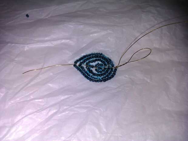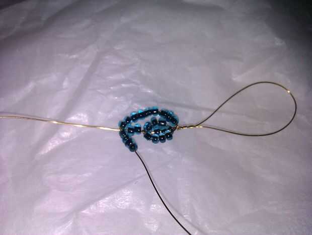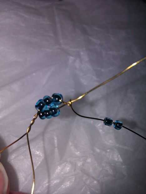 NB en la segunda imagen de abajo, he también coloqué dos granos del alambre de 4cm antes de envolver ronda por segunda vez. Usted puede hacer esto, pero al final decidió hacerlo para mis flores ya que se genera por una brecha que prefiero.