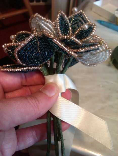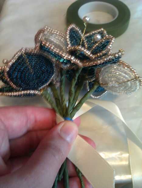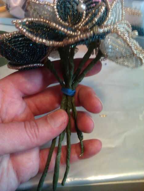 • Las flores se reúnen en una forma que te gusta, fije con una banda elástica