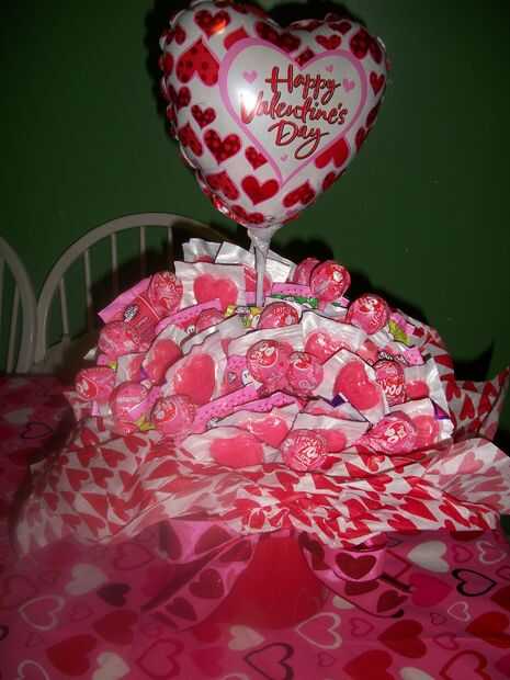Lollipops: usé el jolly rancher, dulces, tartas y tootise rodillo Piruletas de San Valentín.  Se necesita 2 bolsas de cada uno para darle ese look completo.