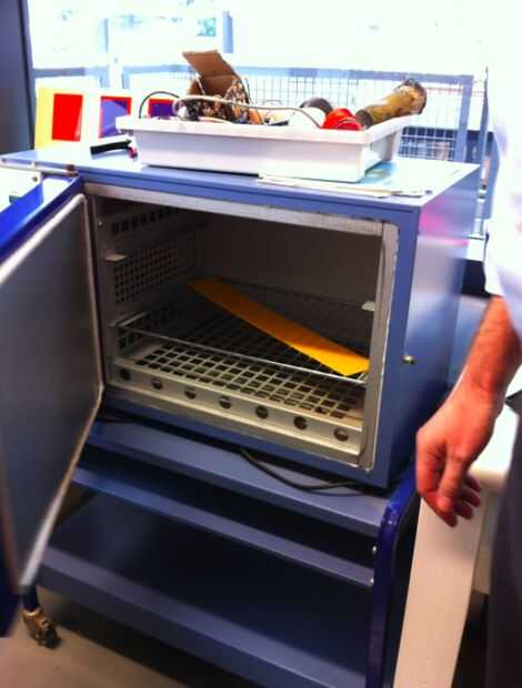 -Una vez calentado hasta blando, sacar el acrílico y rápidamente la molde en la parte superior de la lámpara