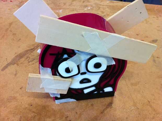 -Pedazos de desecho de la madera sobre la lámpara alrededor de los bordes para actuar como una guía al moldeado de la tapa de la cinta