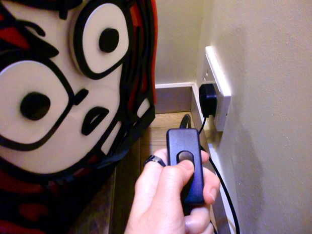 -Introducir el cable de la lámpara y el tornillo en bombilla en estante