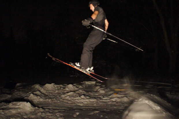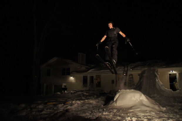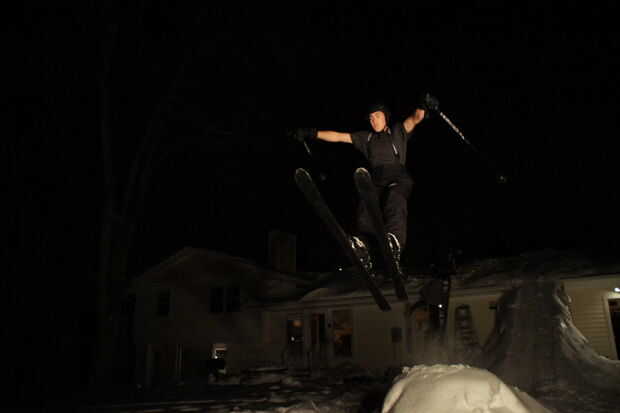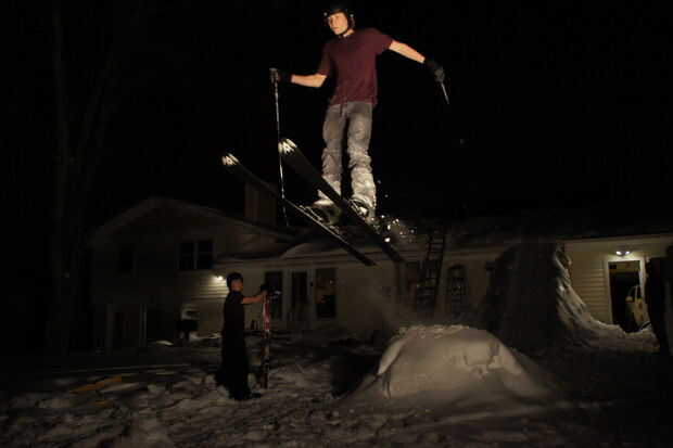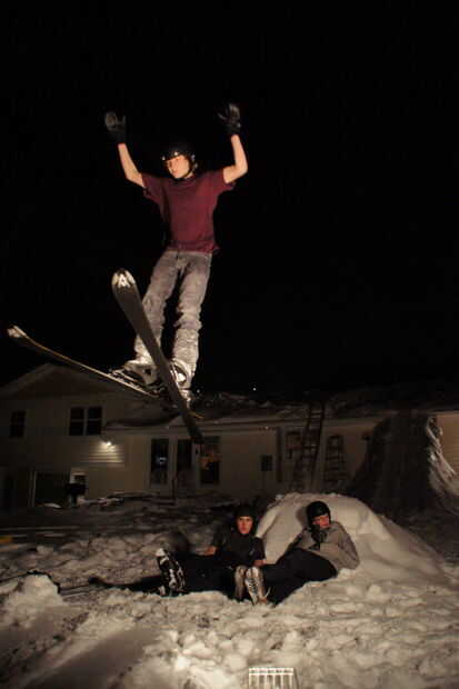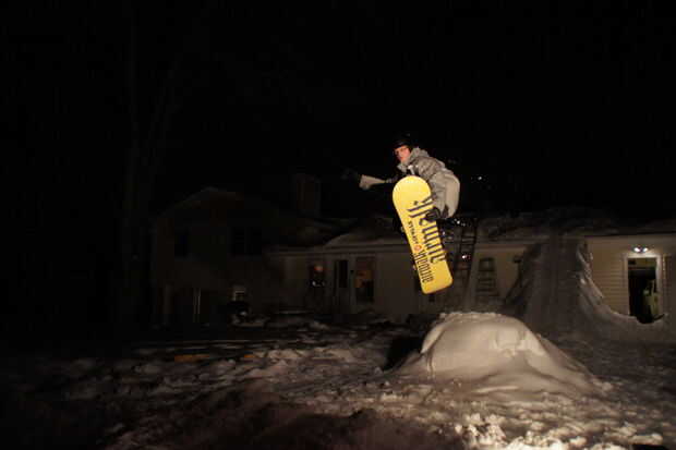 unos amigos y yo aprovechando la gran cantidad de nieve que cayó sobre nosotros en snowmageddon y construido un trineo ejecutar. No era nuestra rampa recta habitual, éste se alabea y que íbamos a empezar con un comienzo fuerte (bajando escaleras). Se