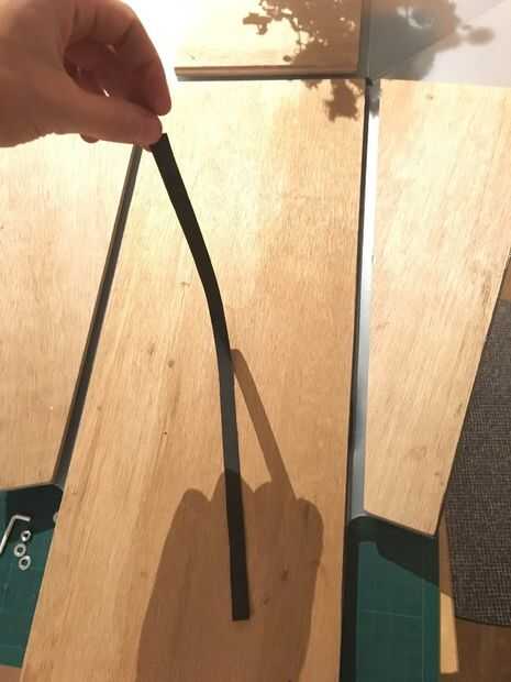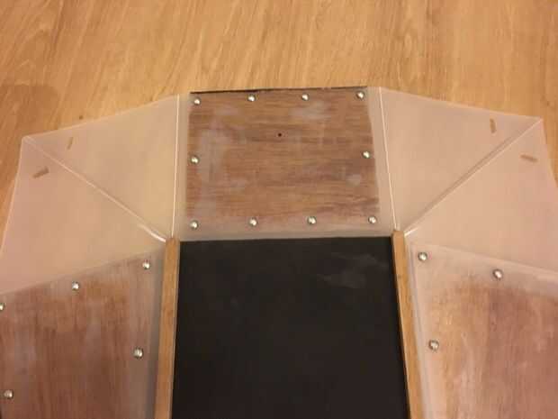 me dieron unas hojas de 90 x 180 cm (3 x 6') de madera ligeramente usado que estoy en el proceso de reasignación.Desde que tengo uso de un par de sillas extras de vez en cuando, recientemente saqué este taburete ranurado (paquete plano) en Sketchup.H
